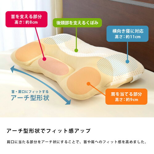 『首しっかり枕』は、特殊な構造で肩口へのフィット感をアップ。